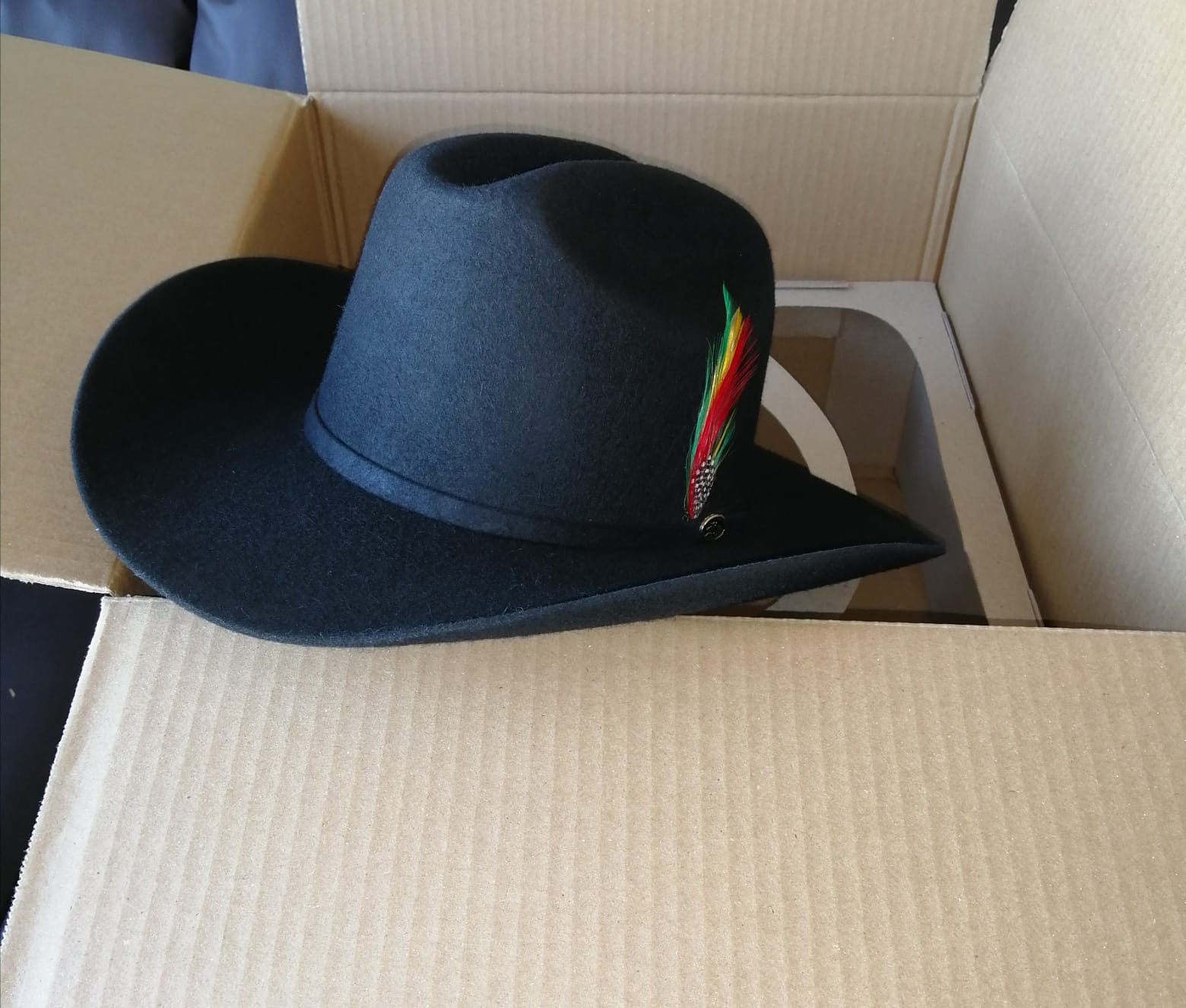 Culiacán - El Fantasma - Texana Lana Americana Copa Alta Falda Mediana con Pluma
