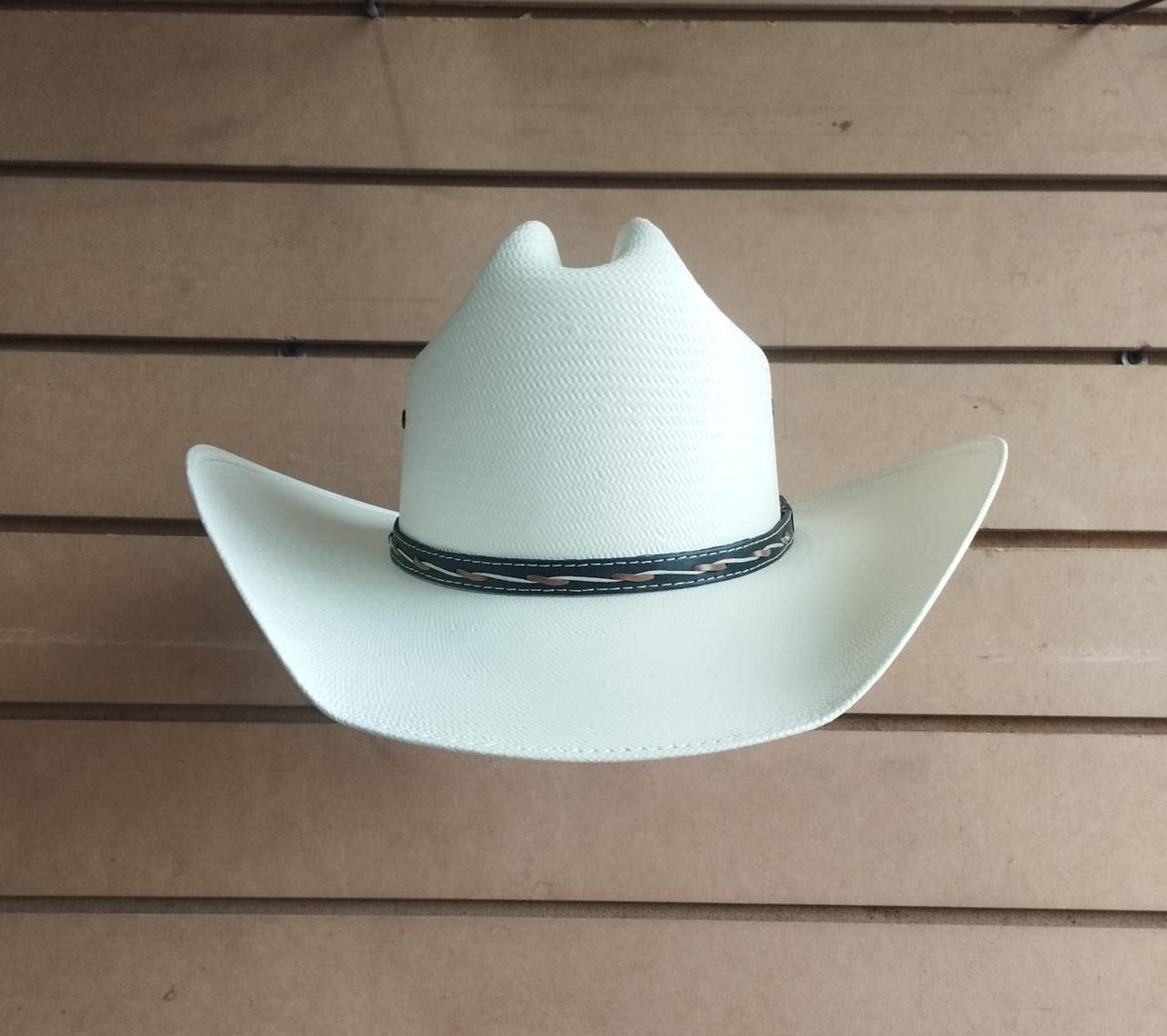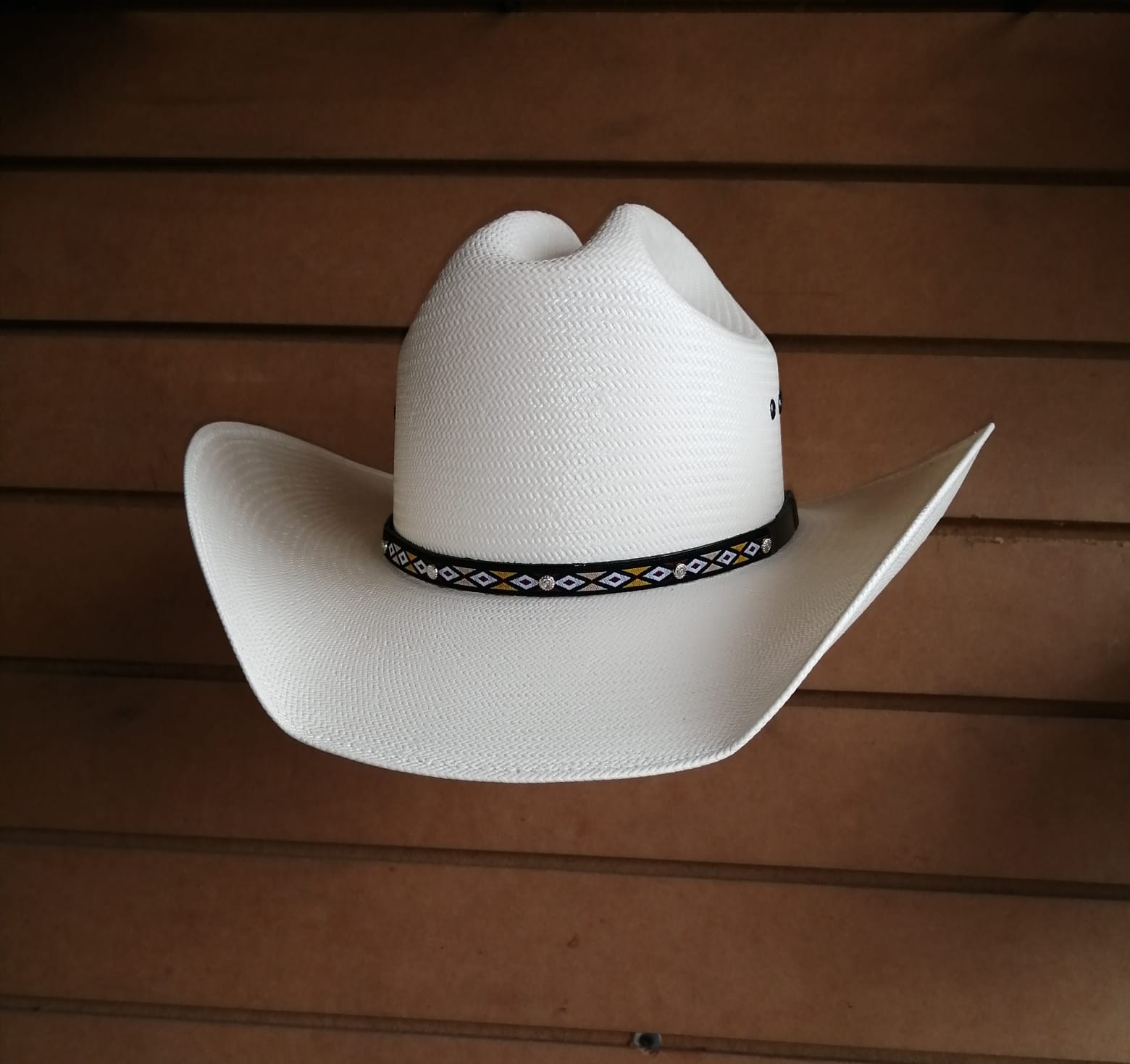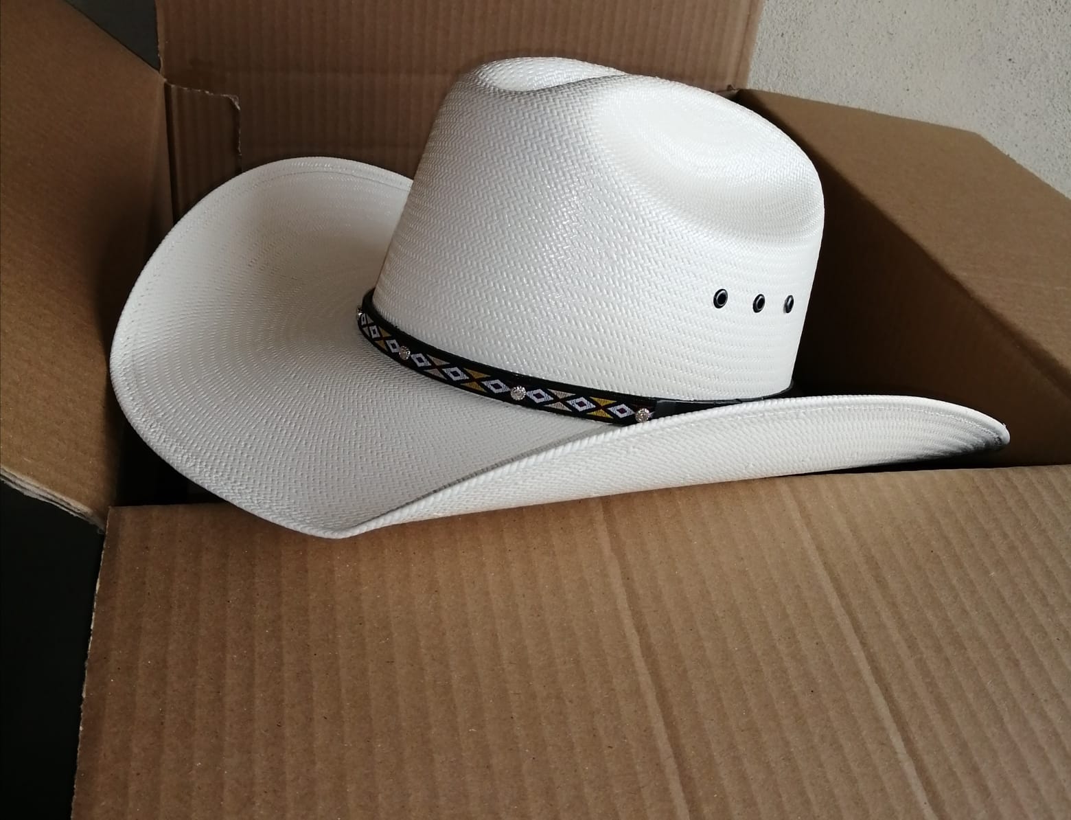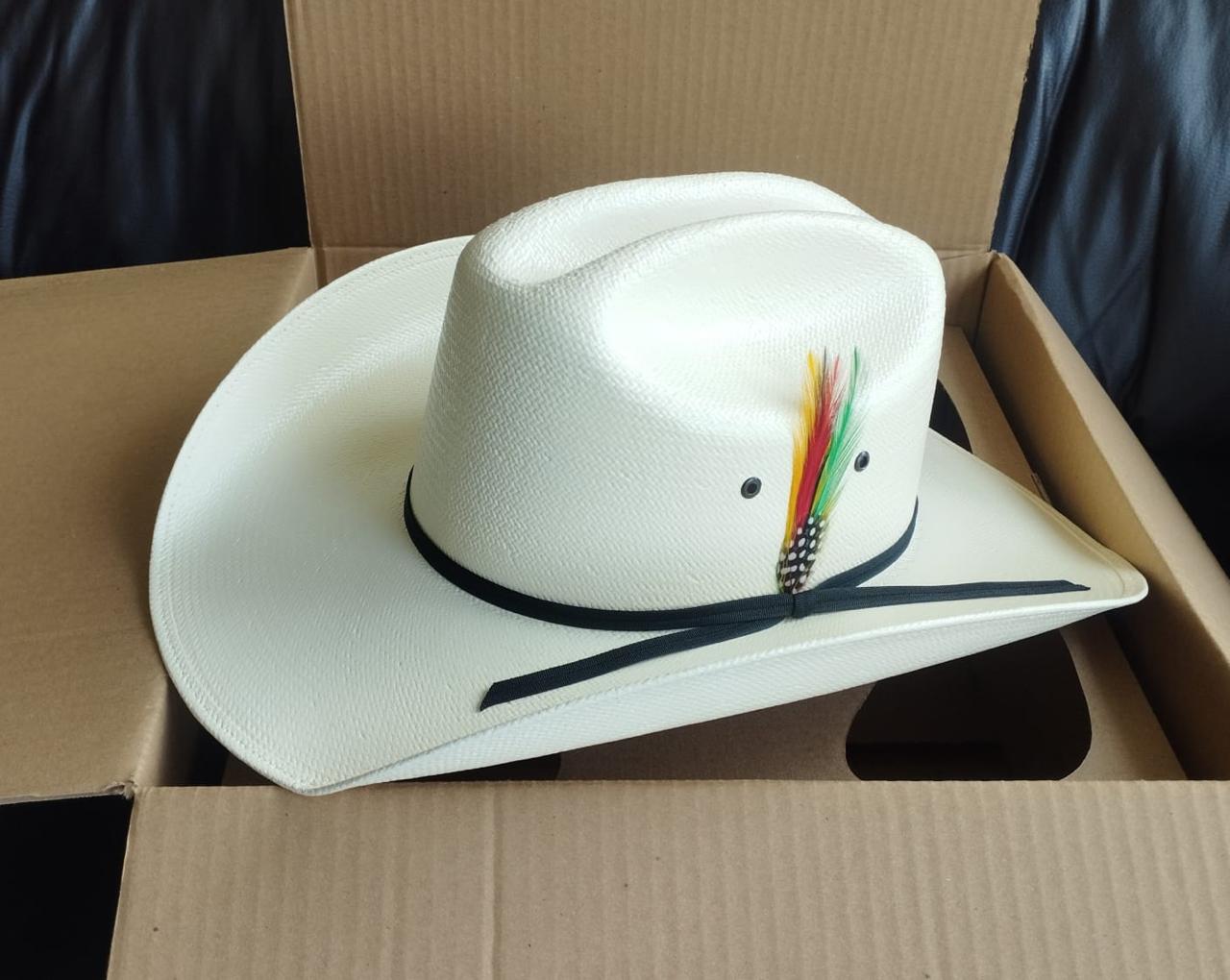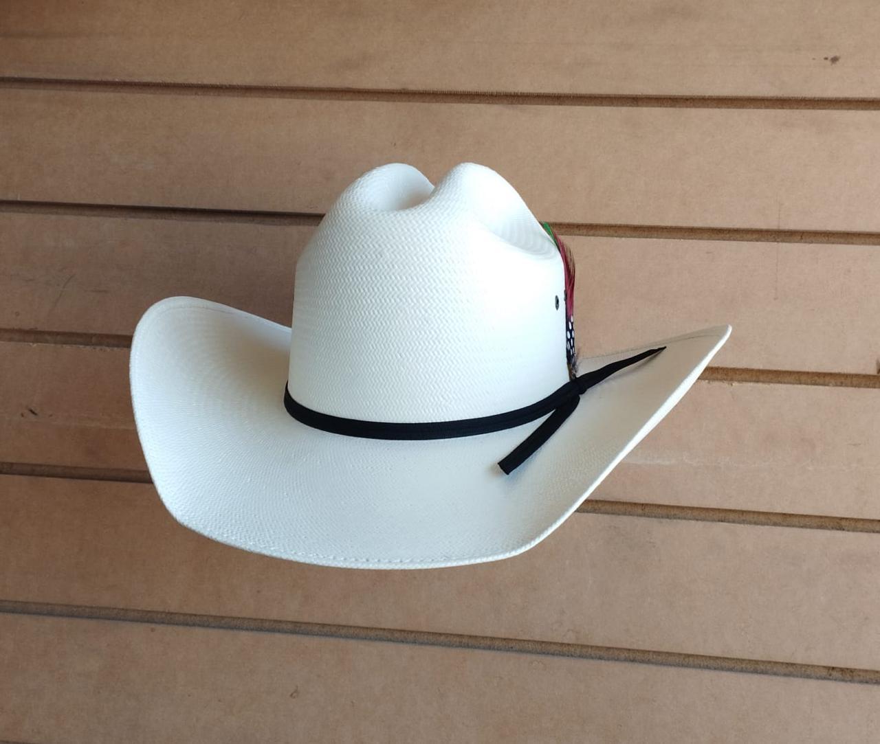 Descubre el poder del estilo y la tradición con el icónico "Marlboro - 100X Copa Baja Americana, Falda Grande con Cuadro". Este sombrero de palma en calidad 100X es más que una prenda; es una declaración.