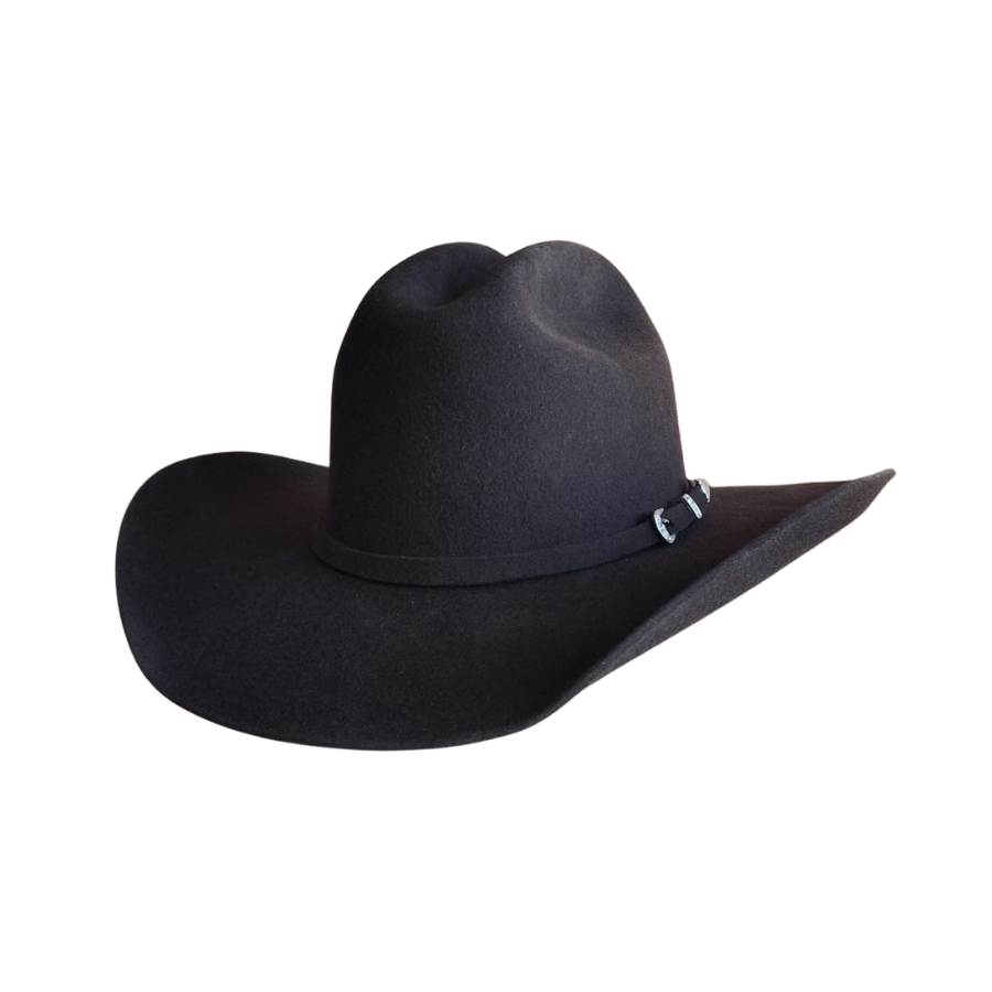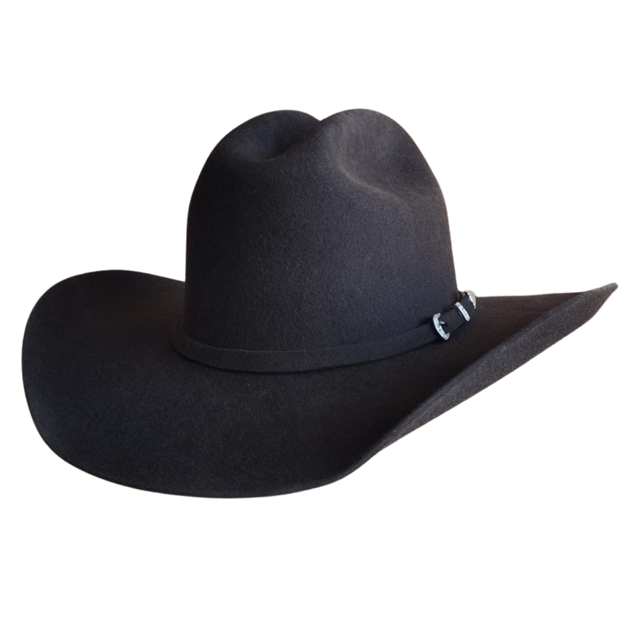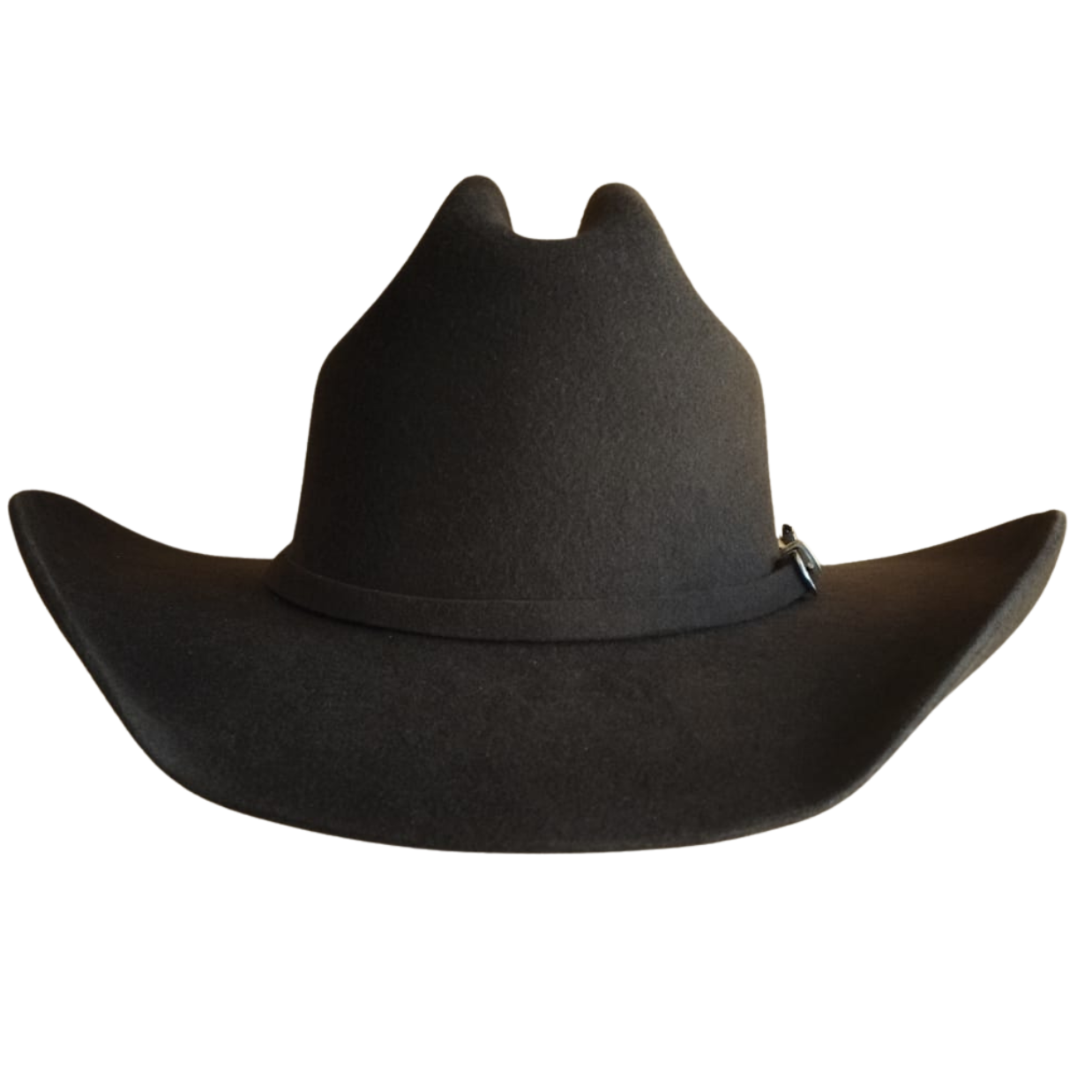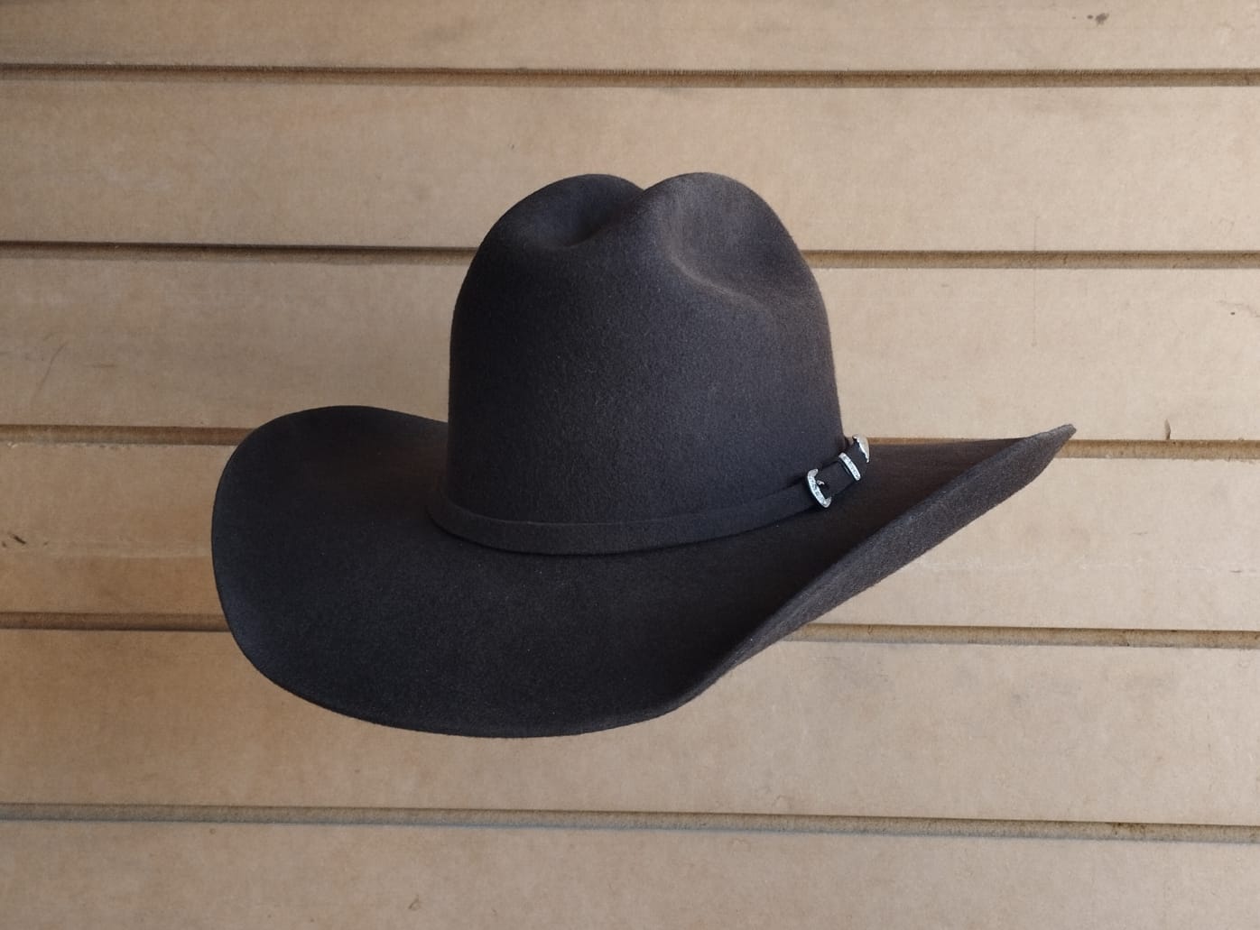 Texana de lana café. Copa baja y falda grande refaldeado.
