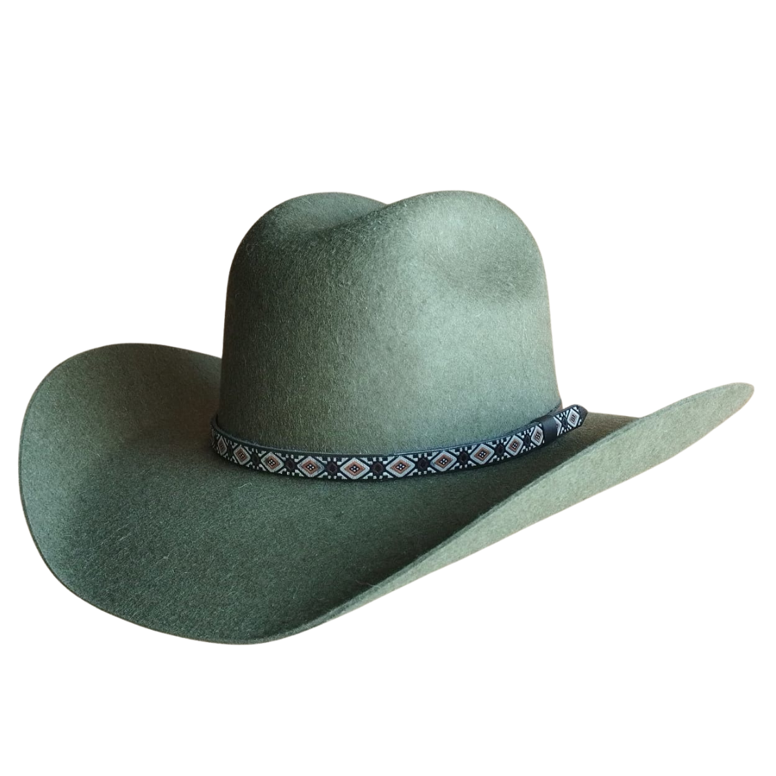 Texana de Lana Nacional en color Verde Cazador, en copa baja tipo Sonora y Falda Grande.