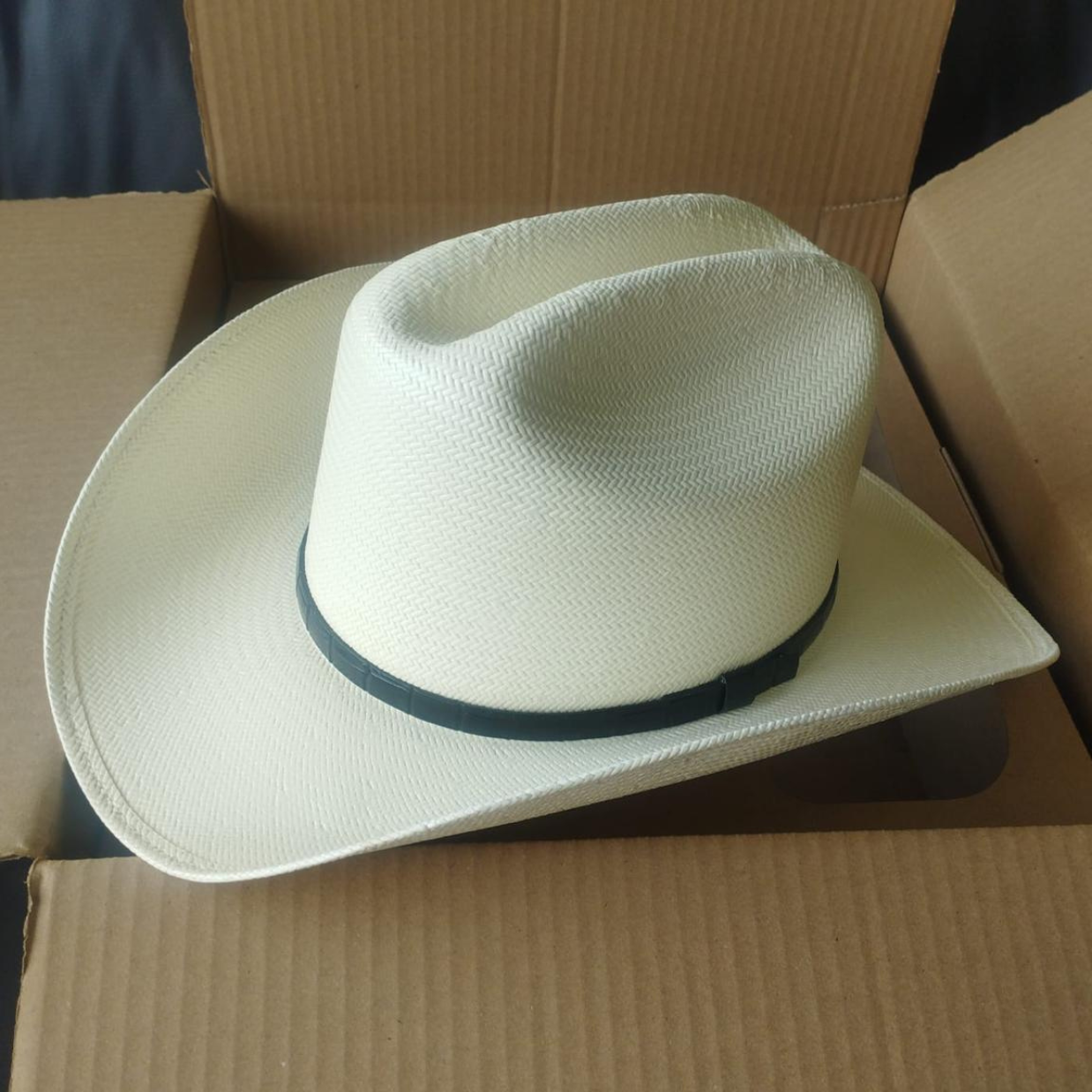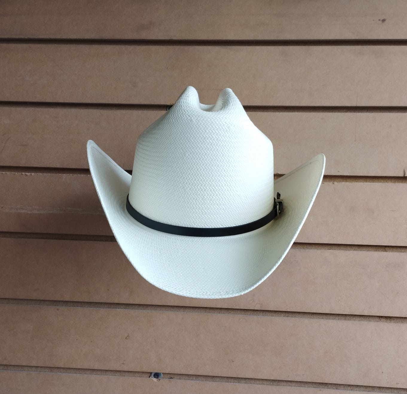 Sombrero de palma calidad 100X, en copa alta, falda mediana, con diseño estilo Valentín Elizalde.